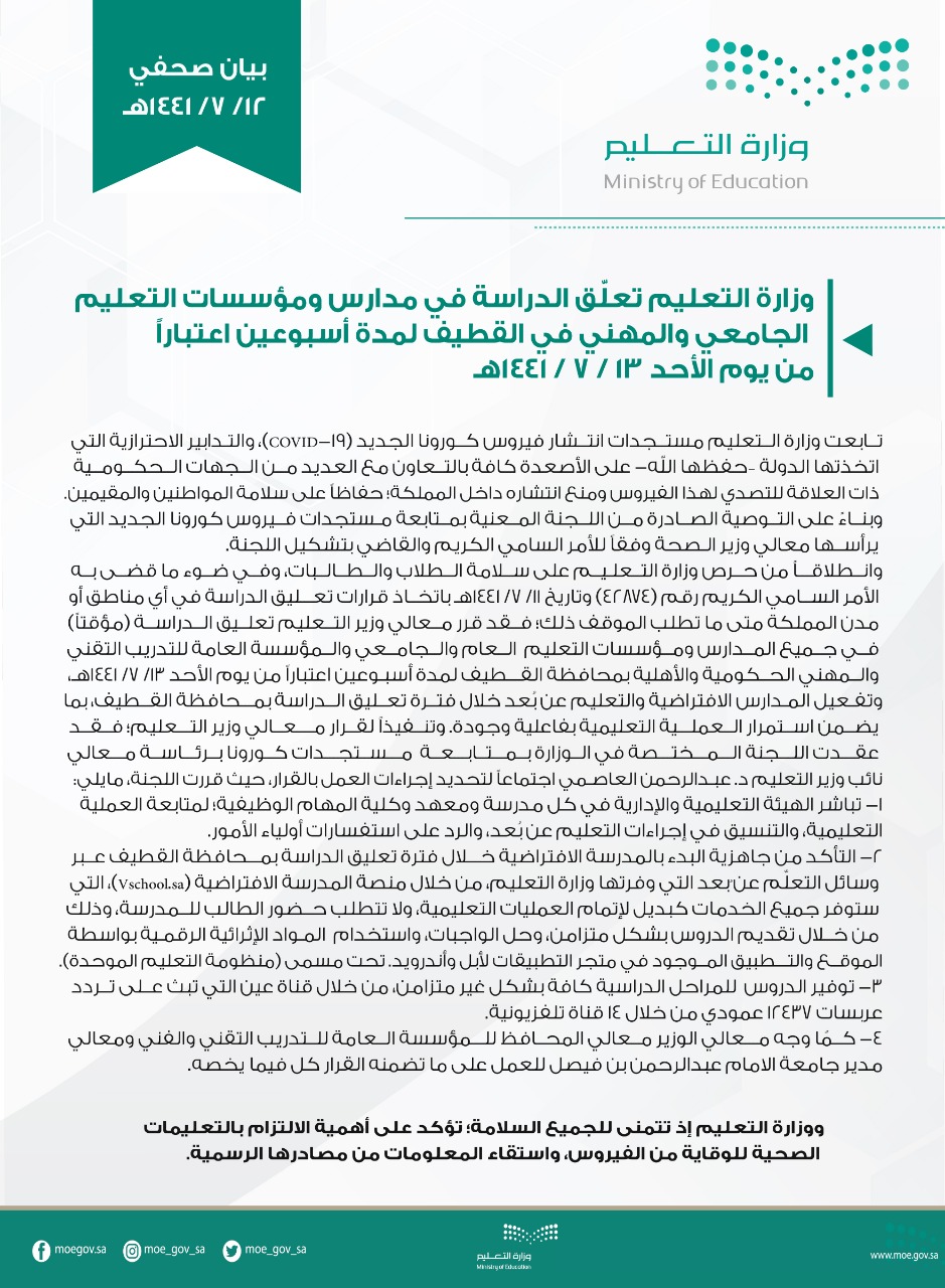 On Twitter Ø¨ÙØ§Ù صØÙÙ ÙØ²Ø§Ø±Ø© Ø§ÙØªØ¹ÙÙÙ